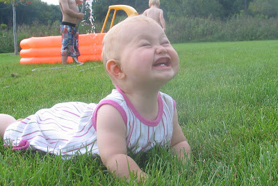 Samuel is always loving on his baby sister (whether she wants it or not). This time she is loving it!
